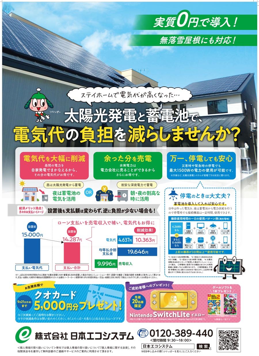 太陽光発電と蓄電池で 電気代の負担を減らしませんか 2020 08 18 その他地域のくらし 株式会社日本エコシステム 札幌のお店 イベント 動画やレシピ情報 ふりっぱーweb