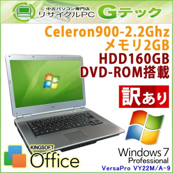 訳あり 中古 ノートパソコン 格安 Windows7 Nec Versapro Vy22m A 9 Dvdrom 3ヵ月保証 メモリ2gb Office Hdd160gb 15 6型 Celeron900