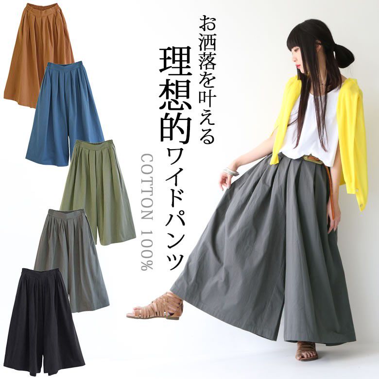 楽天市場 オシャレウォーカー コットンワイドパンツの通販