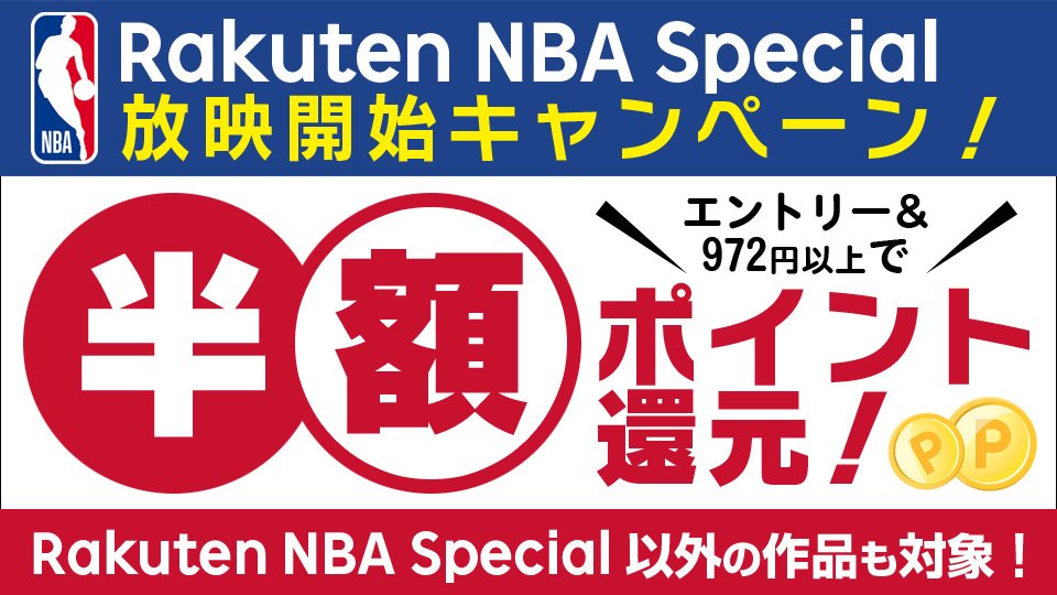 Rakuten Tv 楽天tv On Twitter キャンペーン情報 Rakuten Nba Special 放映開始記念 972円以上のご購入で半額ポイント還元キャンペーン実施中 Rakuten Tvで熱い試合をお楽しみ下さい Nba Nbarakuten Https T Co G1avdqnugw Https T Co Hptbbw0ozh