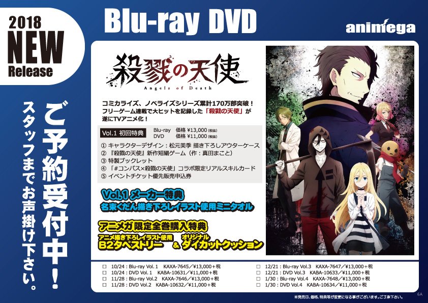 アニメガ ソフマップ 公式 中の人 V Twitter Cd 7 25発売 Tvアニメ 殺戮の天使 Op Ed主題歌 遠藤正明 レイチェル Cv 千菅春香 文教堂 アニメガ限定購入特典は A3ポスター 店舗 通販で予約受付中 Https T Co Ad7gnee5s8 殺戮の天使 遠藤正明