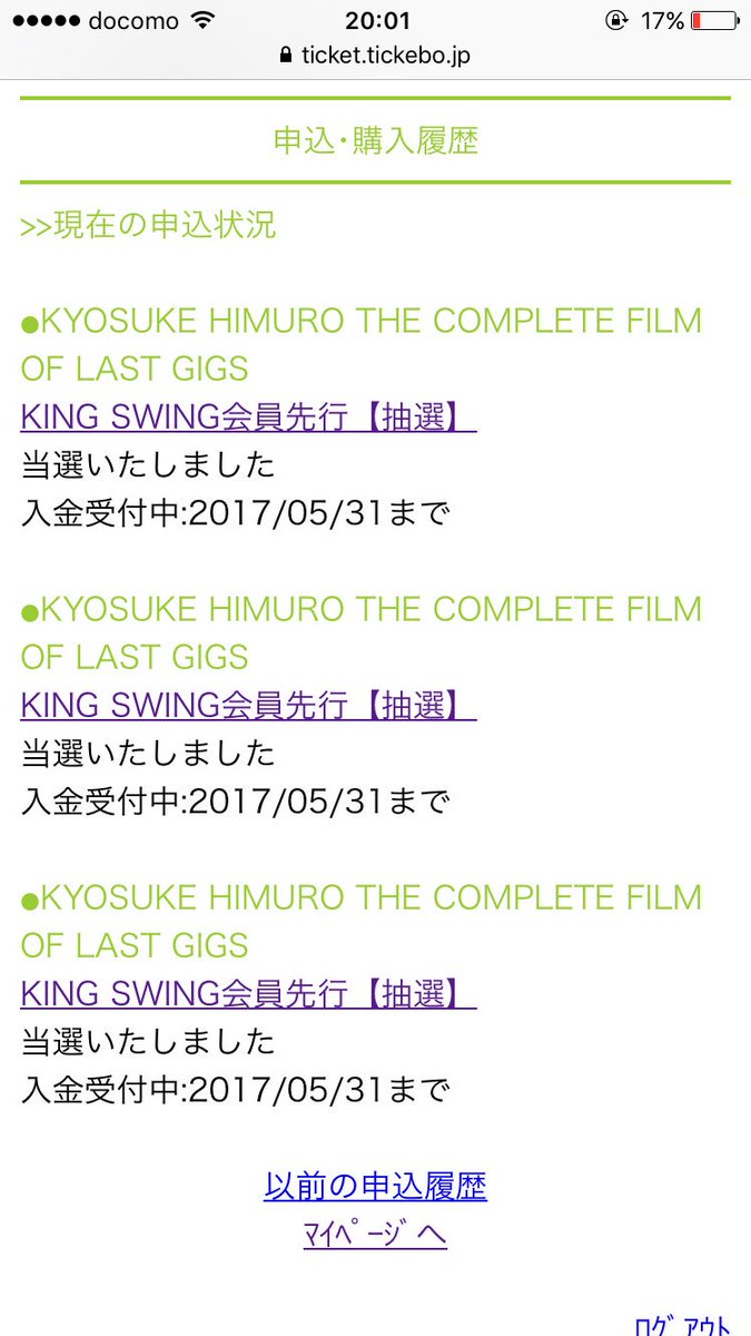 K野 On Twitter 先程 チケットボードを確認した所 氷室京介フィルムコンサート申し込んだ全日程当選しました 前橋 秋田 仙台に参戦する予定です 同会場の方よろしくお願い致します