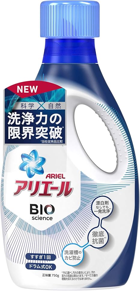 Amazon Co Jp アリエール バイオサイエンス 科学x自然で洗浄力の限界突破 洗濯洗剤 液体 本体 750g ドラッグストア