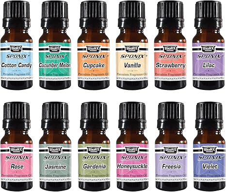 Amazon トップお気に入りプレミアムグレード12の香りのオイル 綿菓子 きゅうりメロン フリージア つや消しカップケーキ クチナシ スイカズラ ジャスミン ライラック ローズストロベリー バニラ バイオレット 10 Ml Sponix エッセンシャルオイル