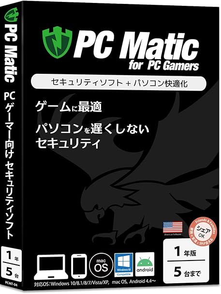 Amazon Pc Matic For Pc Gamers 1年5台 Pcゲーマー向けセキュリティソフト Windows 10 Xp Macos Android ウイルス対策 セキュリティ ソフトウェア