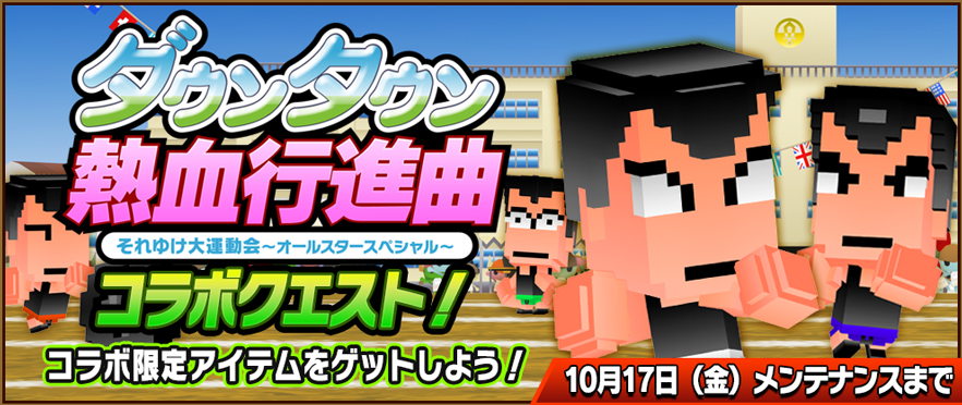 ガンホー ピコットキングダム で ダウンタウン熱血行進曲 とのコラボ企画を開催 熱血高校の くにお や花園高校の りき などが登場 Social Game Info