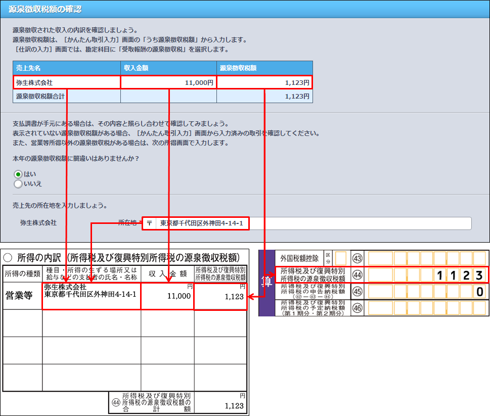 確定申告書の作成で 源泉徴収税額の確認 の 源泉徴収税額 が正しく表示されない やよいの青色申告 オンライン サポート情報