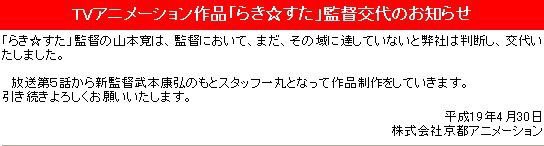 Niseno Naruse Ar Twitter 本日 4 30 は 京都アニメーションが らき すた の監督交代を公表した日です あれから11年経ちましたが 山本寛は未だ その域に達していない 状態ですね