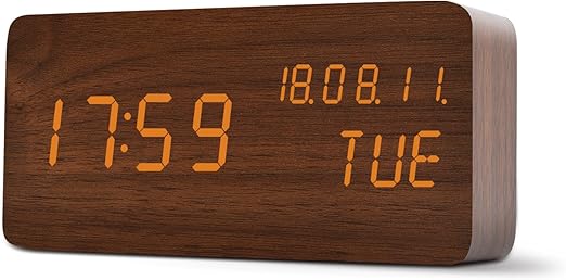 Amazon Co Jp Teecoo Led 木目調 デジタル 置き 卓上 目覚まし時計 大音量 オシャレ カレンダー アラーム複数設定 温度計 音感センサー 輝度調節 設定記憶 省エネ 乾電池式 Usb電源 クリスマスプレゼント ブラウン オレンジ ホーム キッチン